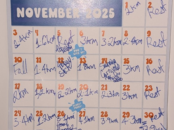 Sunday 30th Nov Despite having to take four days of, I not only reached my 50km goal, I surpassed it by finishing at 52.9km! Share